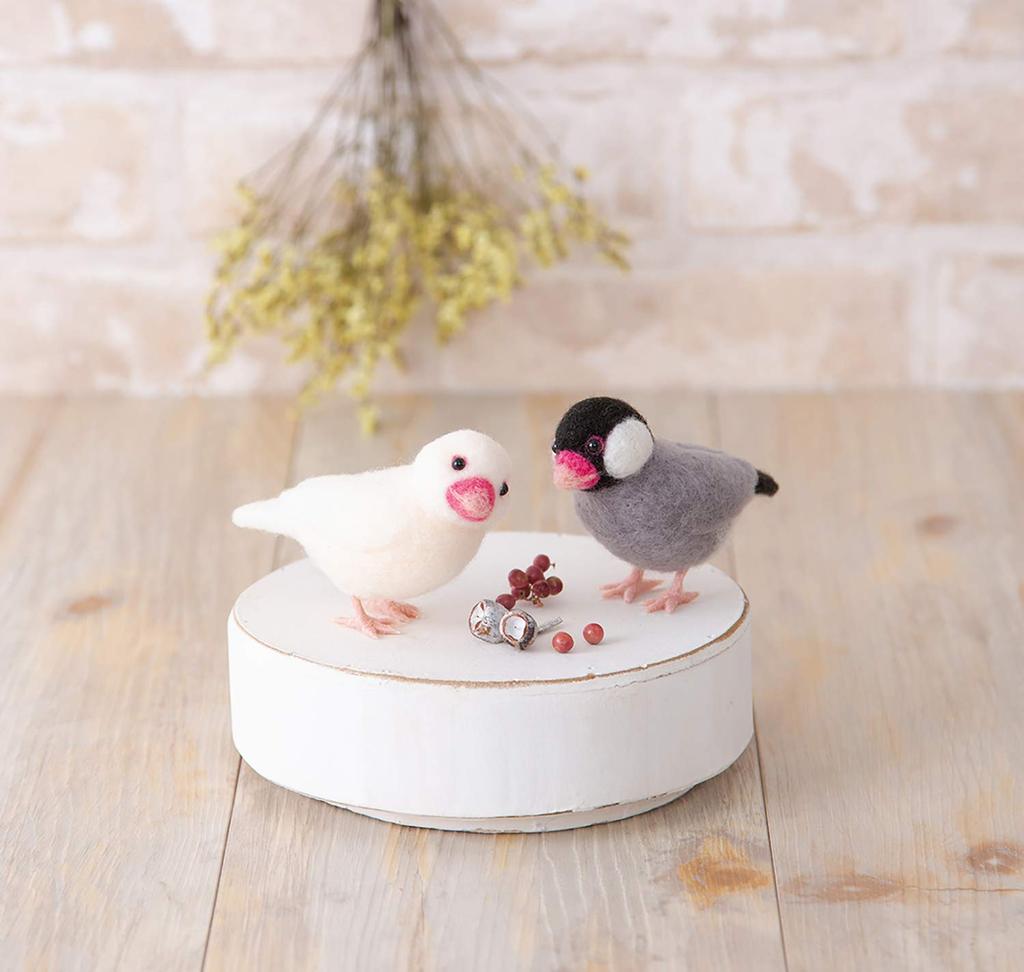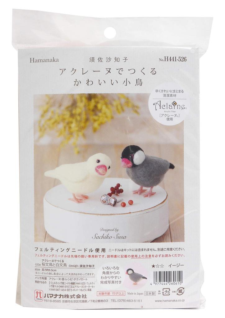 Набор для валяния из шерсти Hamanaka Милые маленькие птички, сделанные из Sakura Java Sparrow и White Java - Воробей Aclaine, H441-526