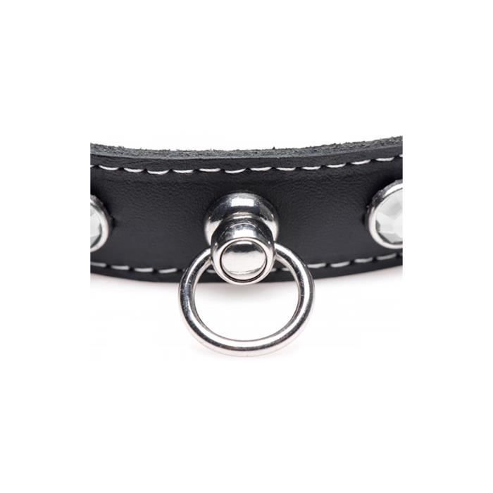 Collier en cuir - Bling Vixen - Noir - Doublure douce - Strass brillants