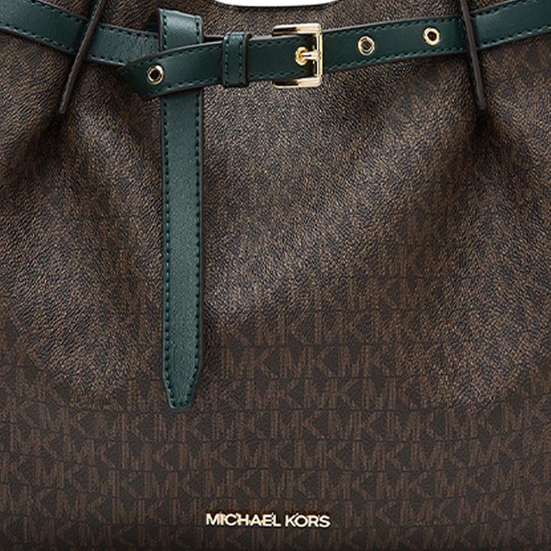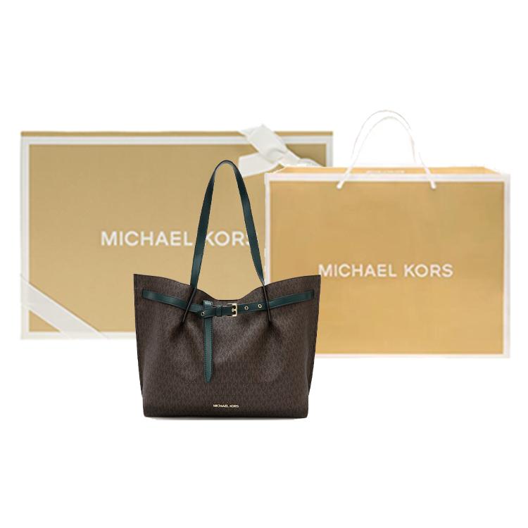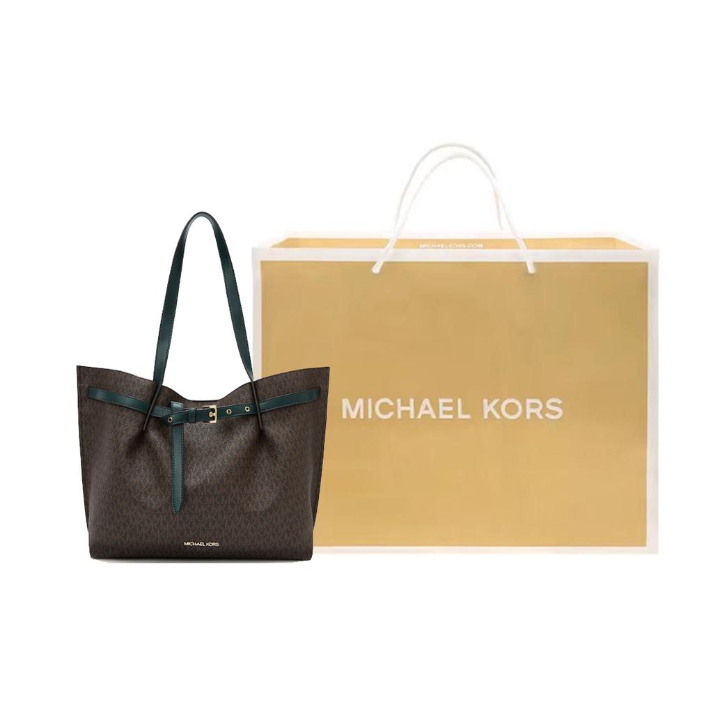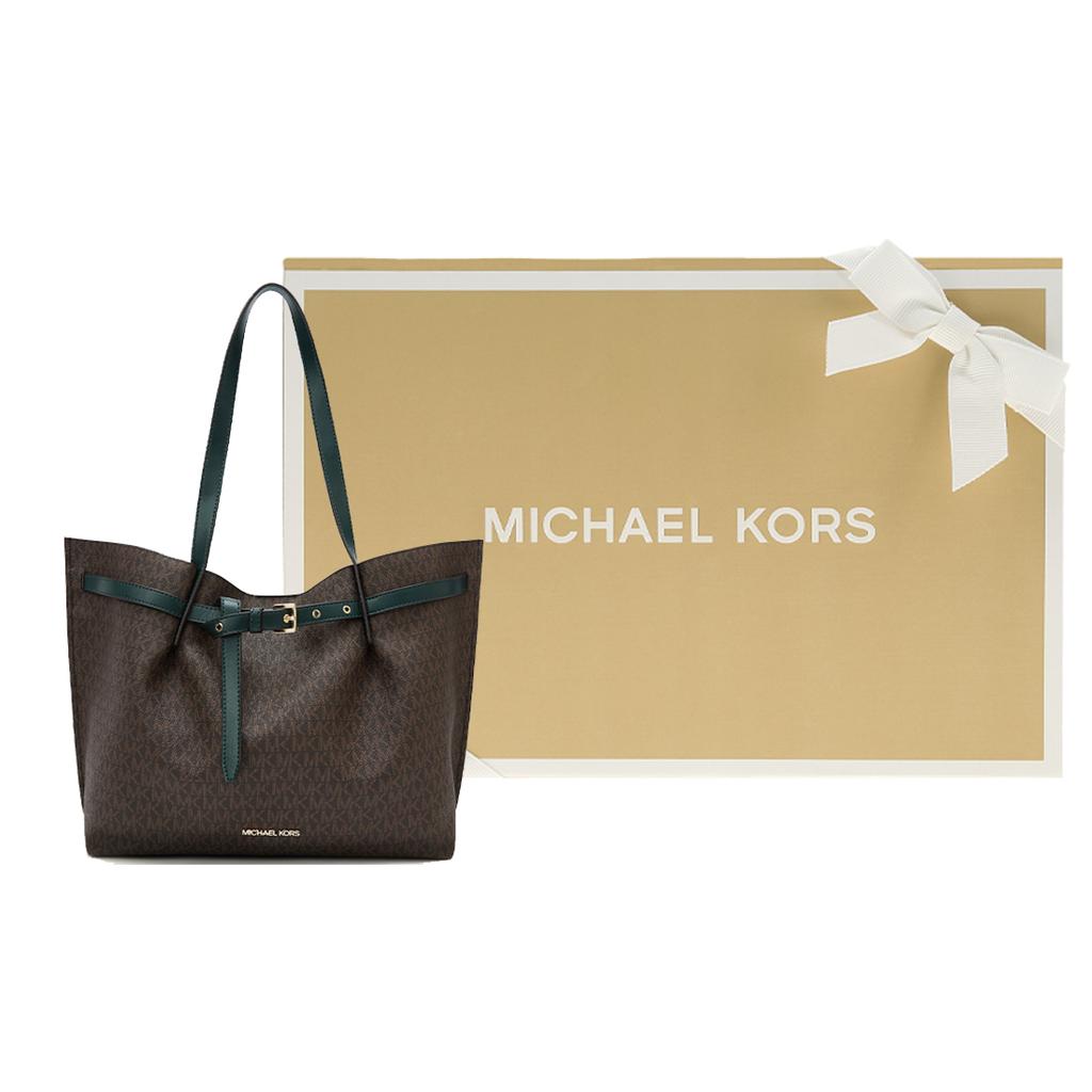 Новая сумка-тоут из искусственной кожи MICHAEL KORS, сумка для покупок, сумка на одно плечо, очень маленькая, женская, темно-коричневая/темно-зеленая 35S1GU5T7B-305