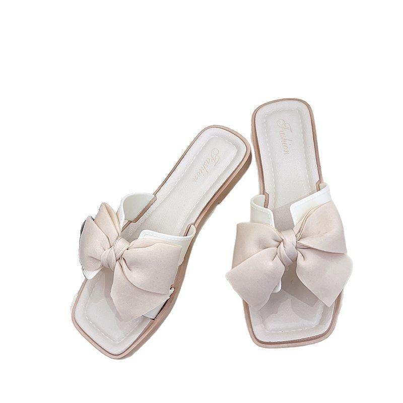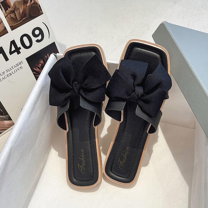 Женская летняя одежда милый бант пляжные тапочки приморские повседневные нескользящие мягкие прохладные тапочки