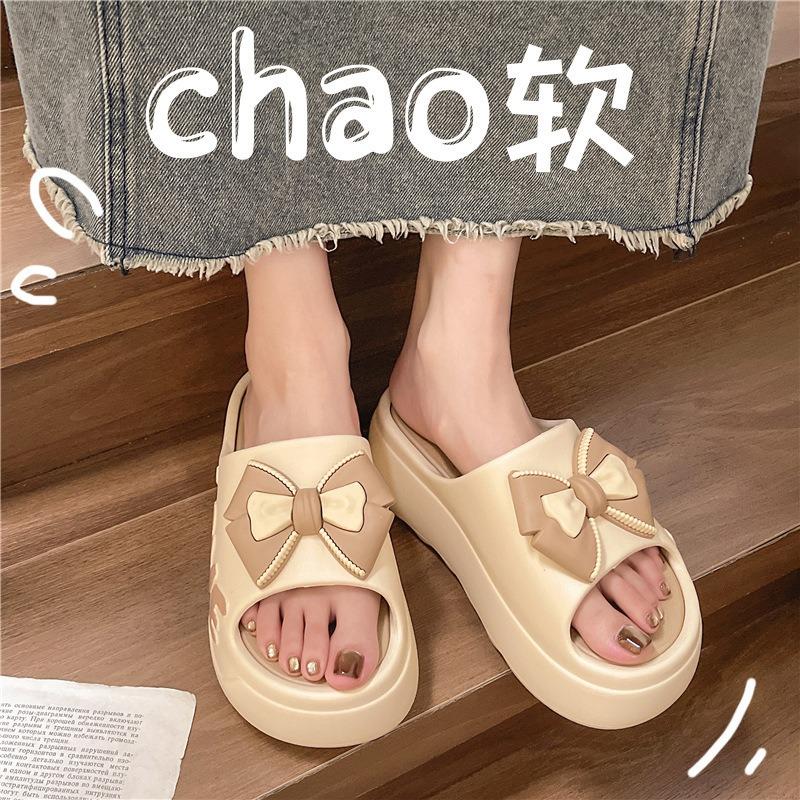 Женские летние домашние модные тапочки на толстой подошве с бантом, крутые тапочки для ванной комнаты, нескользящие уличные тапочки