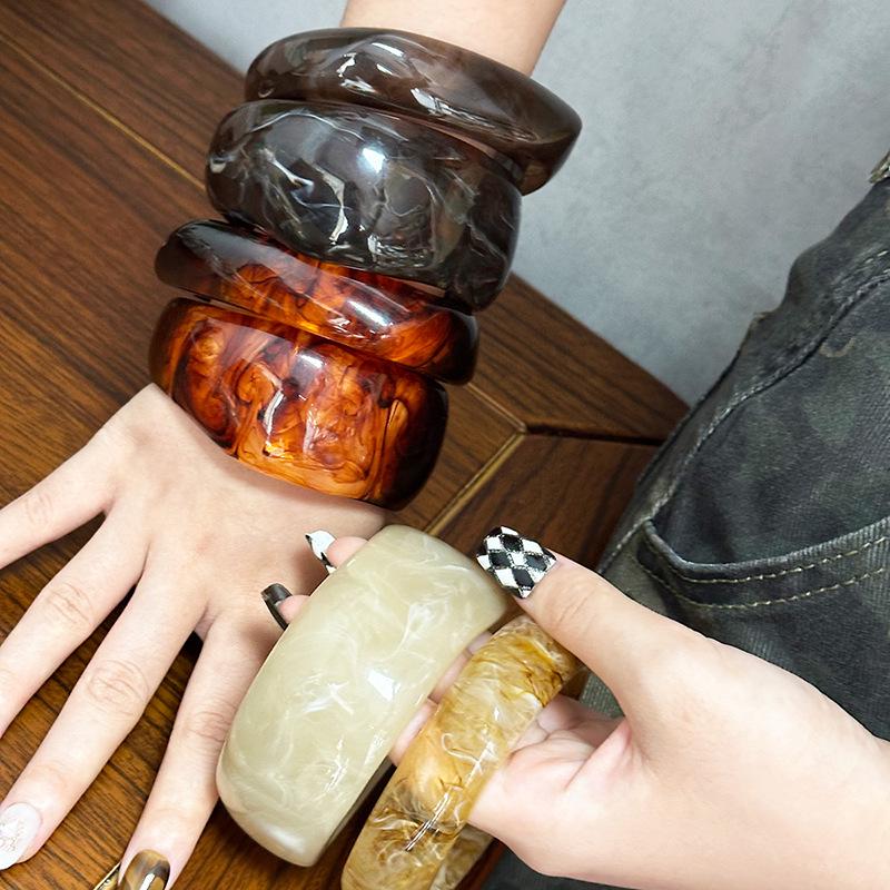 Винтажный европейский/американский браслет из смолы: Широкий неровный браслет в французском стиле для весенне-летней моды