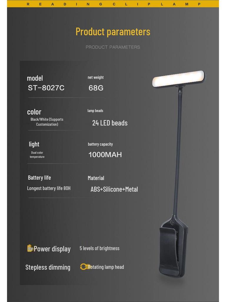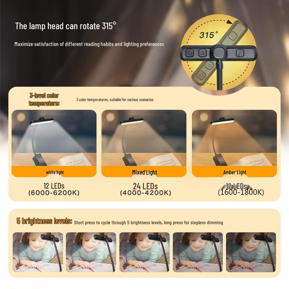 Трансграничная двухрядная лампа с 24 источниками света и вращением, с защитой глаз, зарядка Type-C для креативного чтения