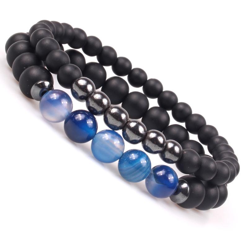 Браслеты для пар из натурального камня Кони Синий Полосатый Агат для мужчин и женщин — купить товар онлайн с бесплатной доставкой по всему миру!