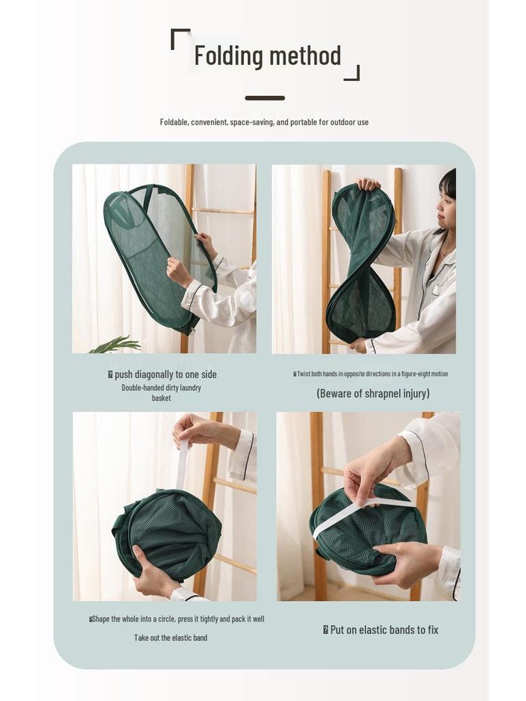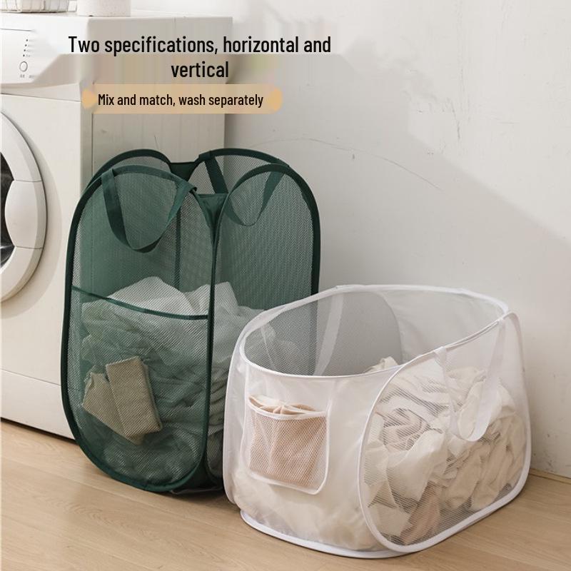 Складная сетчатая корзина для белья: Моющаяся, многофункциональная корзина для хранения одежды и ванной комнаты.