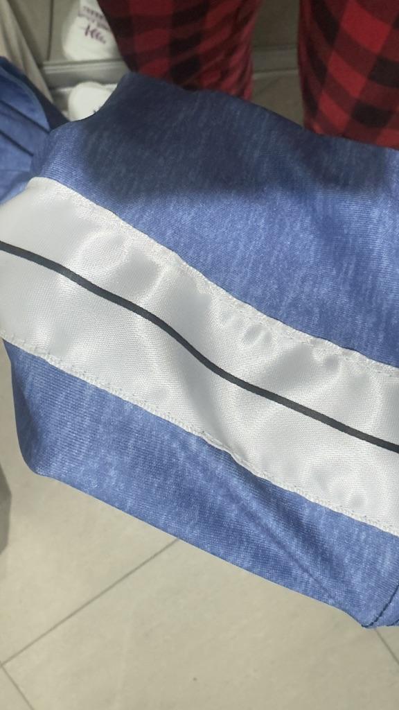Ткань на картинке- трикотаж. В реальности - другая, похуже. Брала размер 54, ношу 52-54, великоват, но на рост 175 подходит. Лампасы из атласной ленты смотрятся дешево. Швы на полочке стянуты, поэтому ткань тянет. Буду все переделывать. Если не умеете шить, не рекомендую к покупке.