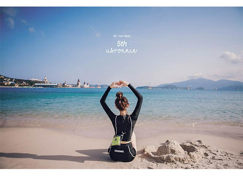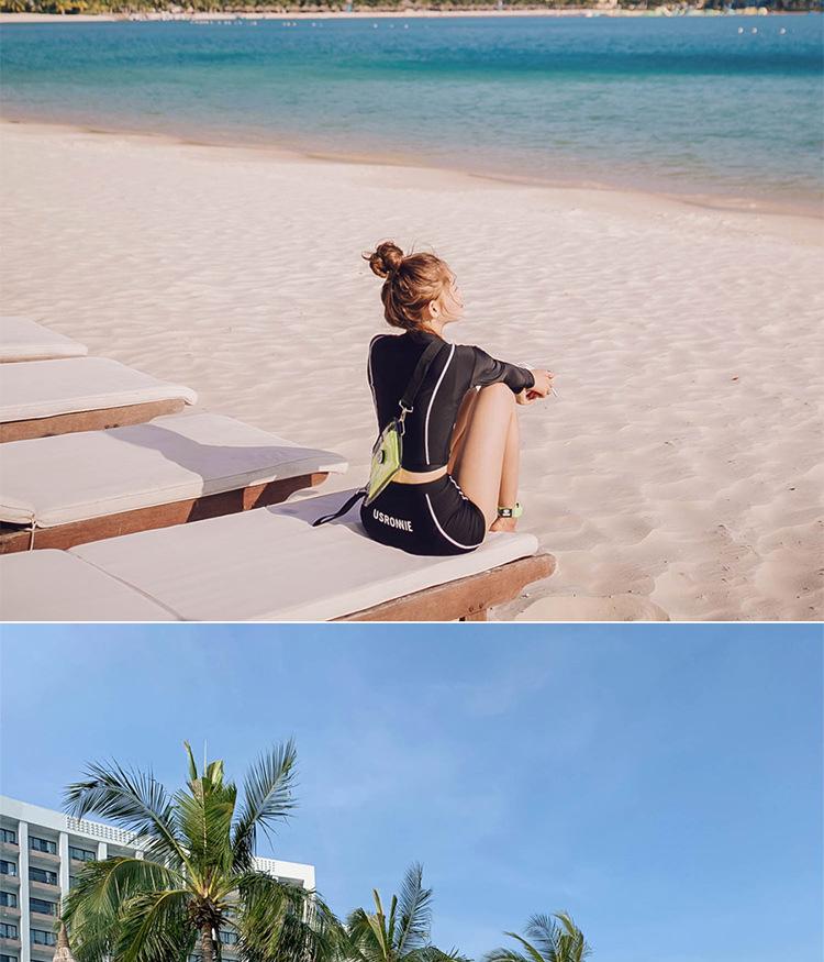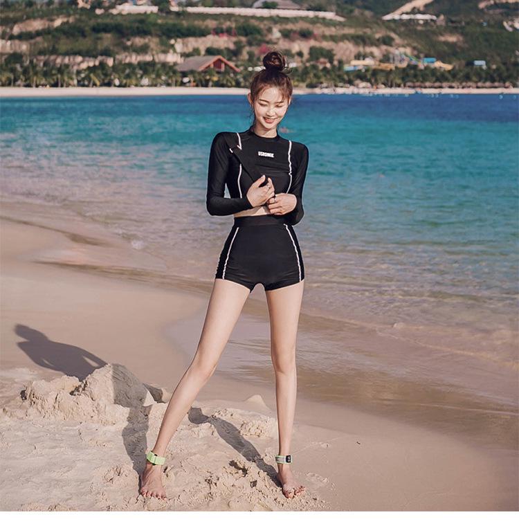 Стильный ребристый однотонный черный купальник-двойка 2023 года с длинными рукавами для защиты от солнца