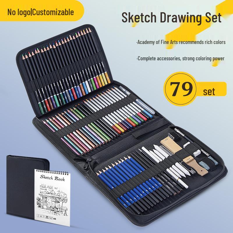 Набор из 79 предметов для рисования цветными карандашами и эскизов, для трансграничной торговли, с сумкой для хранения