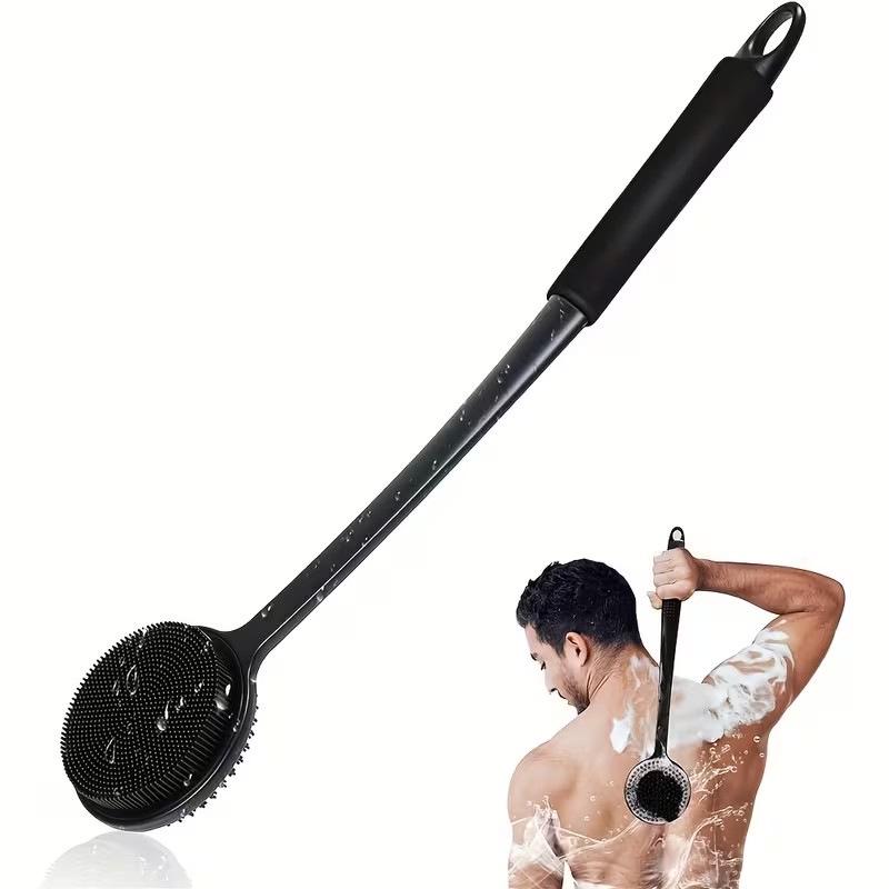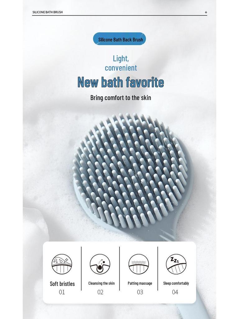 Силиконовая отшелушивающая щетка для душа с длинной ручкой и мочалка для спины