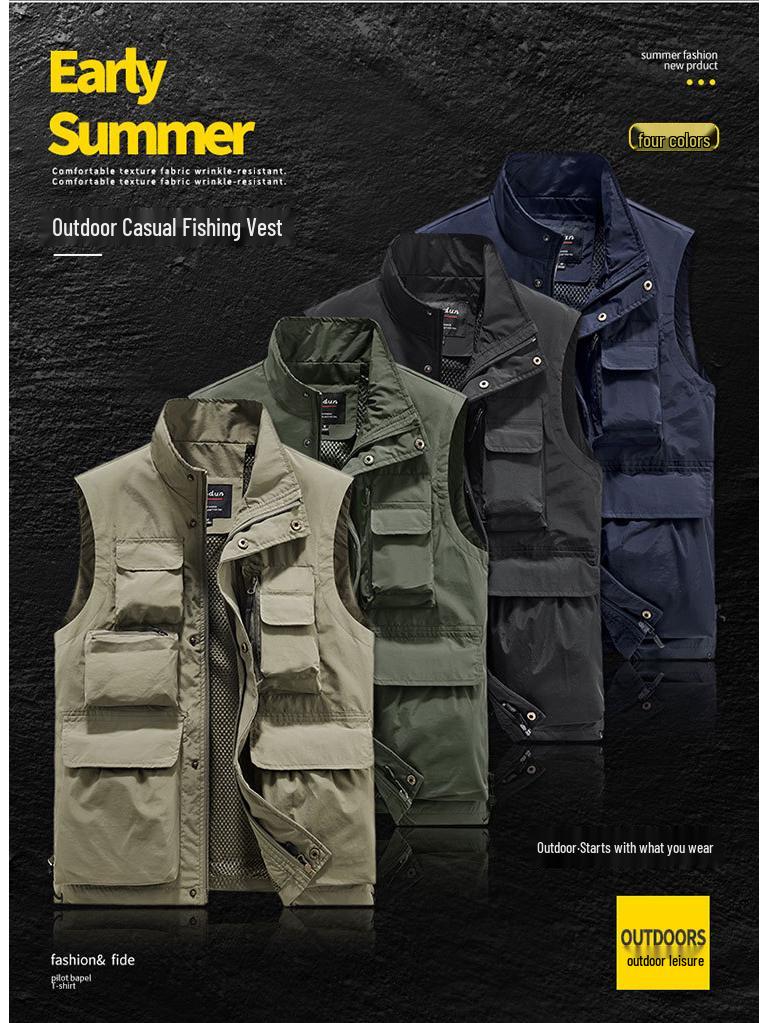 Откройте для себя максимальную универсальность с этим мужским жилетом для активного отдыха с несколькими карманами, разработанным для рыбалки, фотографии и повседневной носки.. Его спортивный стиль и свободный крой обеспечивают комфорт и свободу движений, что делает его идеальным для различных видов деятельности.. Жилет имеет пиджачный вырез и удобную застежку-молнию для легкого надевания.. Изготовлено с тонкой верхней одеждой и однотонным узором, что обеспечивает элегантный и современный вид.. Изготовленный из прочного нейлонового материала и дополненный мехом из смесового химического волокна, этот жилет идеально подходит для тех, кто ценит функциональность и стиль в своих занятиях на открытом воздухе.