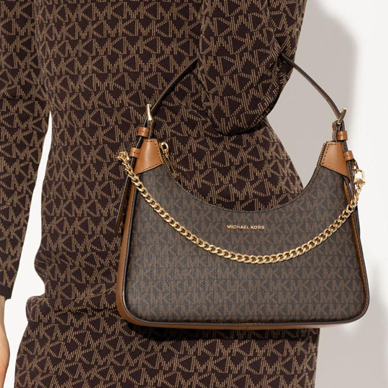 Новая женская сумка MICHAEL KORS из хлопка и кожи, сумка через плечо, коричневая 32R3G3WN6B-252