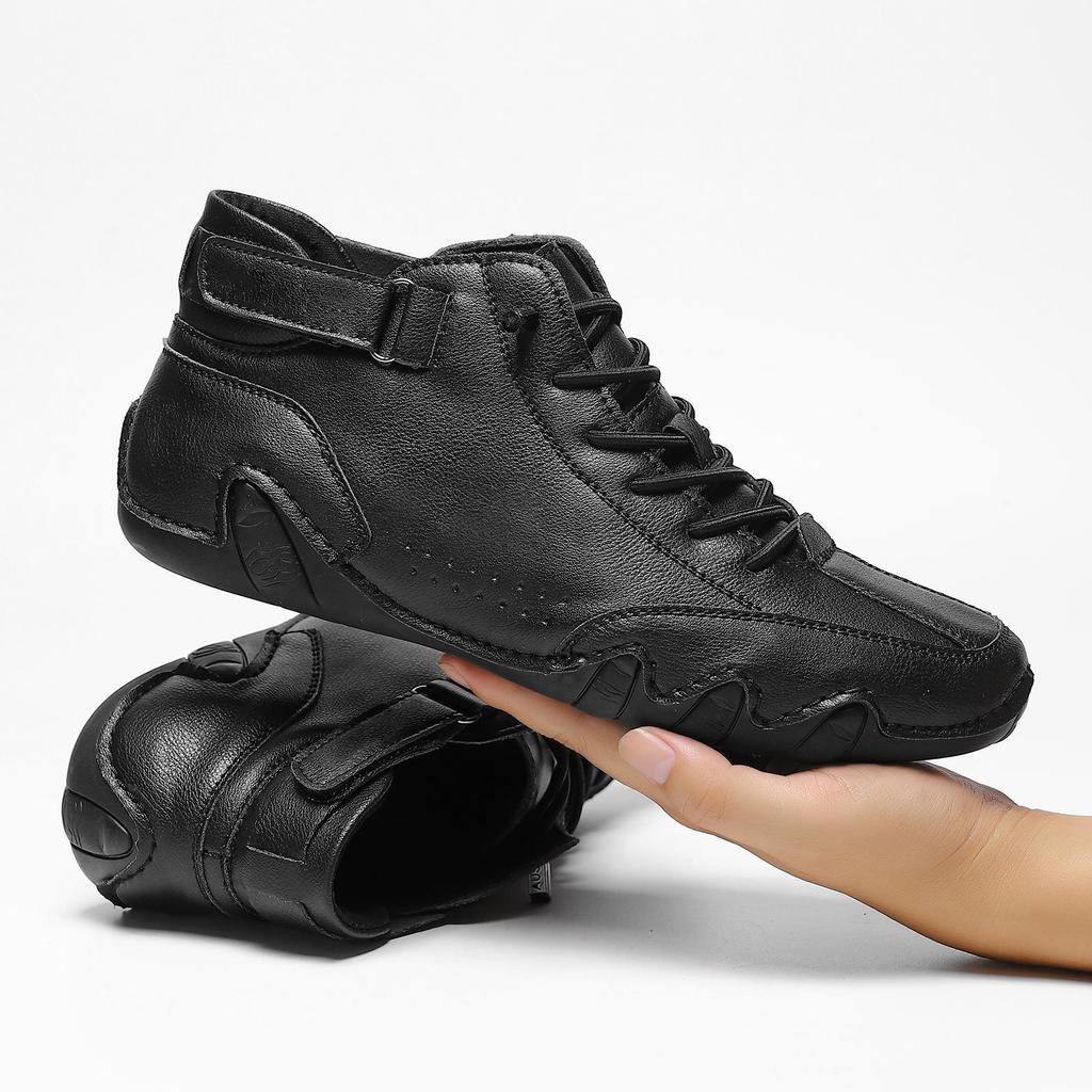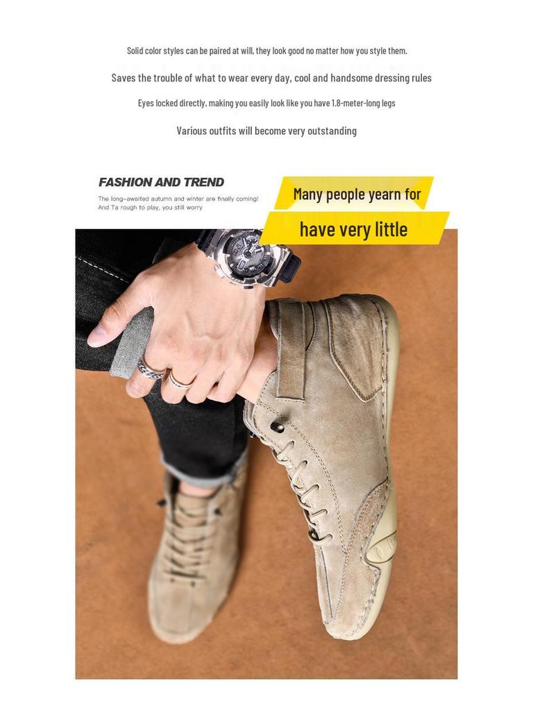 Эти мужские высокие повседневные зимние ботинки созданы для стиля и функциональности в холодное время года.. Изготовленные из натуральной кожи, они выглядят изысканно, обеспечивая при этом долговечность и комфорт.. Плюшевая вельветовая подкладка обеспечивает дополнительное тепло и уют, что делает их идеальными для ношения зимой.. Оснащенные прочной резиновой подошвой, эти ботинки обеспечивают отличное сцепление и устойчивость на различных поверхностях, что делает их идеальным выбором для передвижения в ледяных или скользких условиях.. Собираетесь ли вы на какое-то мероприятие или просто на прогулку, эти ботинки обеспечат и комфорт, и стильный внешний вид.
