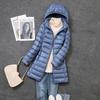 Женский легкий пуховик средней длины на белом утином пуху, корейский стиль, приталенный дизайн со съемным капюшоном — купить товар онлайн с бесплатной доставкой по всему миру!
