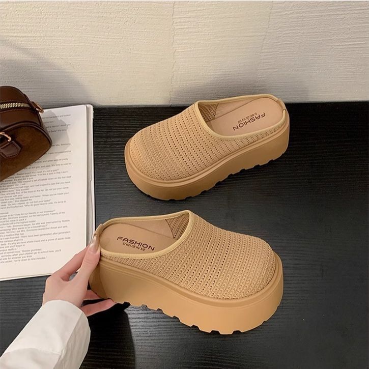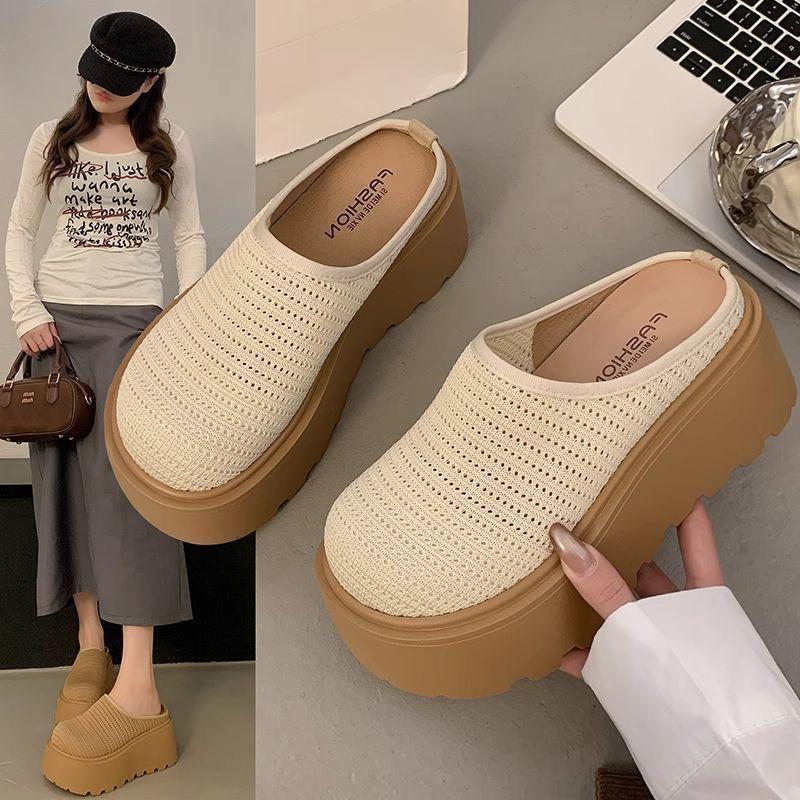 Шлепанцы Boken на толстой подошве, увеличивающие рост, женские, лето 2025, новая коллекция, корейская версия, модные, повседневные, с закрытым носком, полушлепанцы для улицы