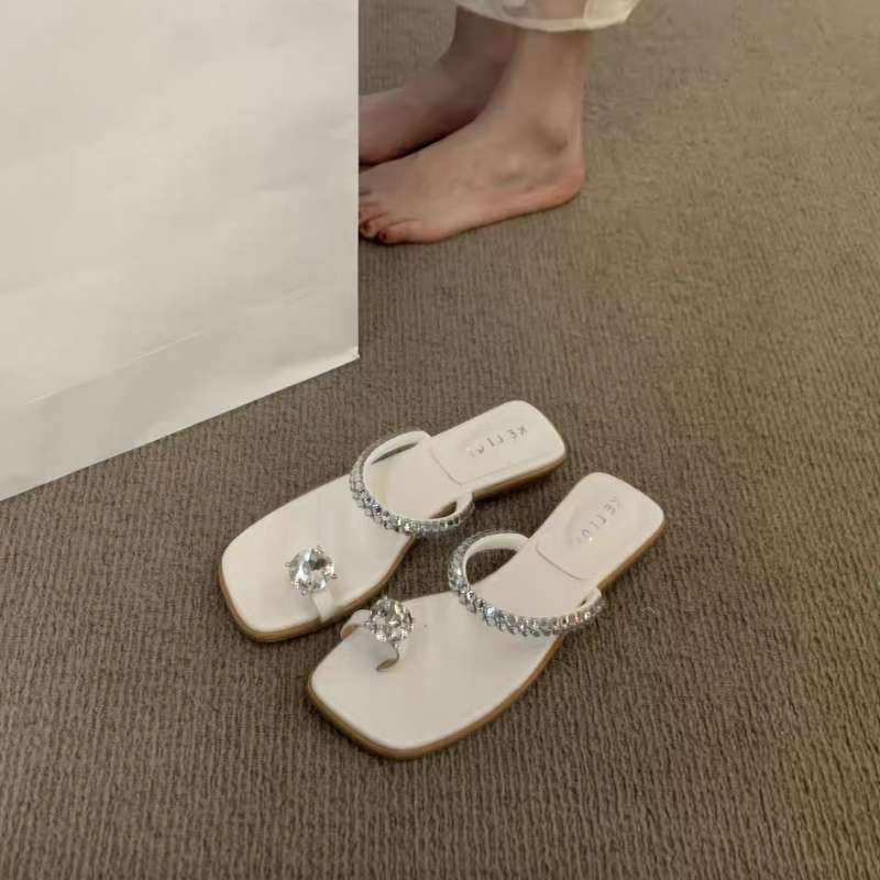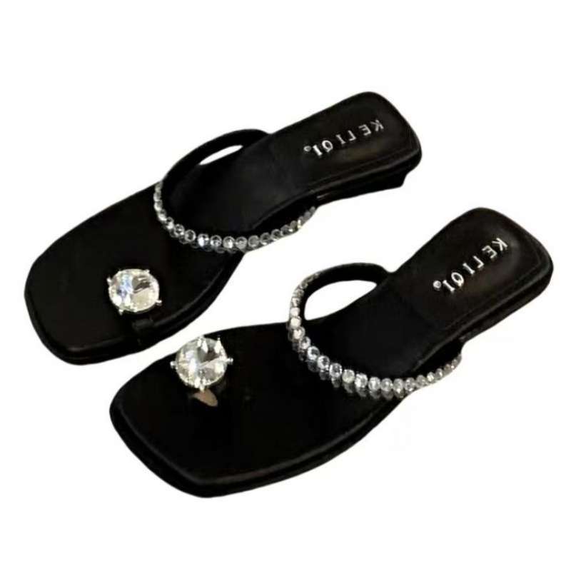 Весна и лето 2025 новые босоножки со стразами, женская обувь для улицы, низкий каблук, квадратный носок, закрытый носок, сказочный стиль, сандалии с юбкой