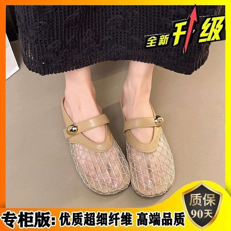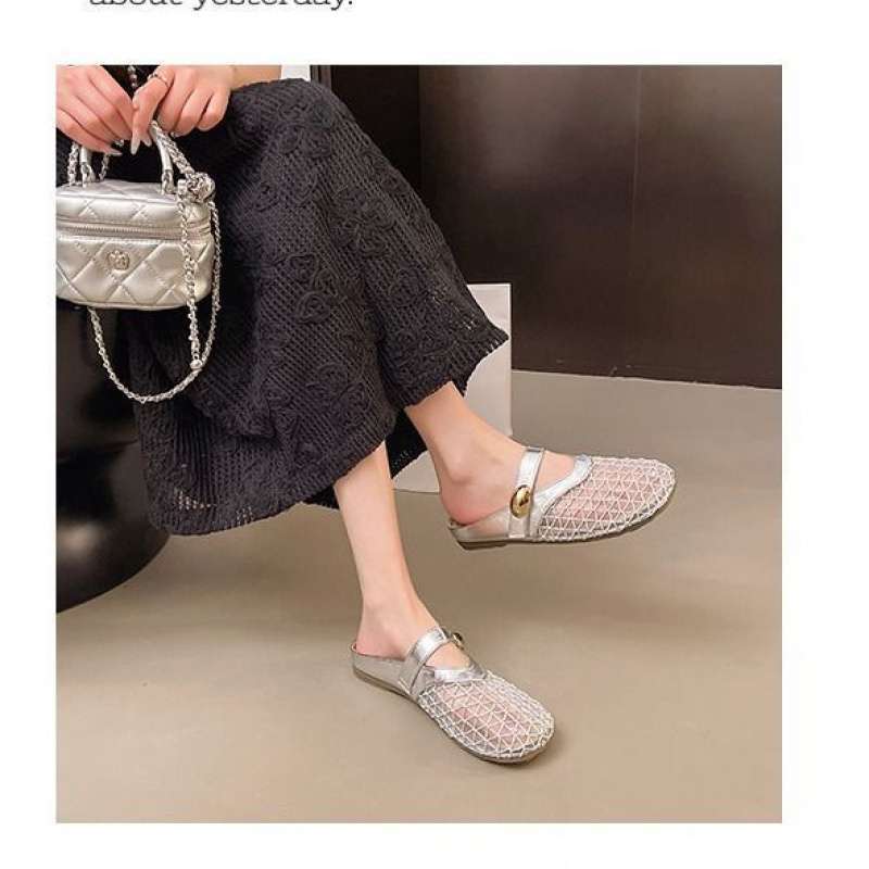 Модная верхняя одежда, полая сумка, голова, полушлепанцы, женские, лето 2025, новые, универсальные, популярные, сетчатые сандалии на плоской подошве