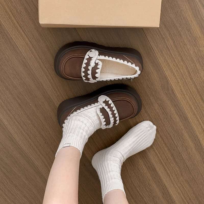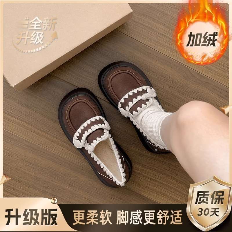 Платформа, увеличивающая рост, маленькие кожаные туфли в британском стиле, женские, 2025, новые, осенне-зимние, универсальные, ретро, бархатные лоферы на одной педали, хлопковые туфли