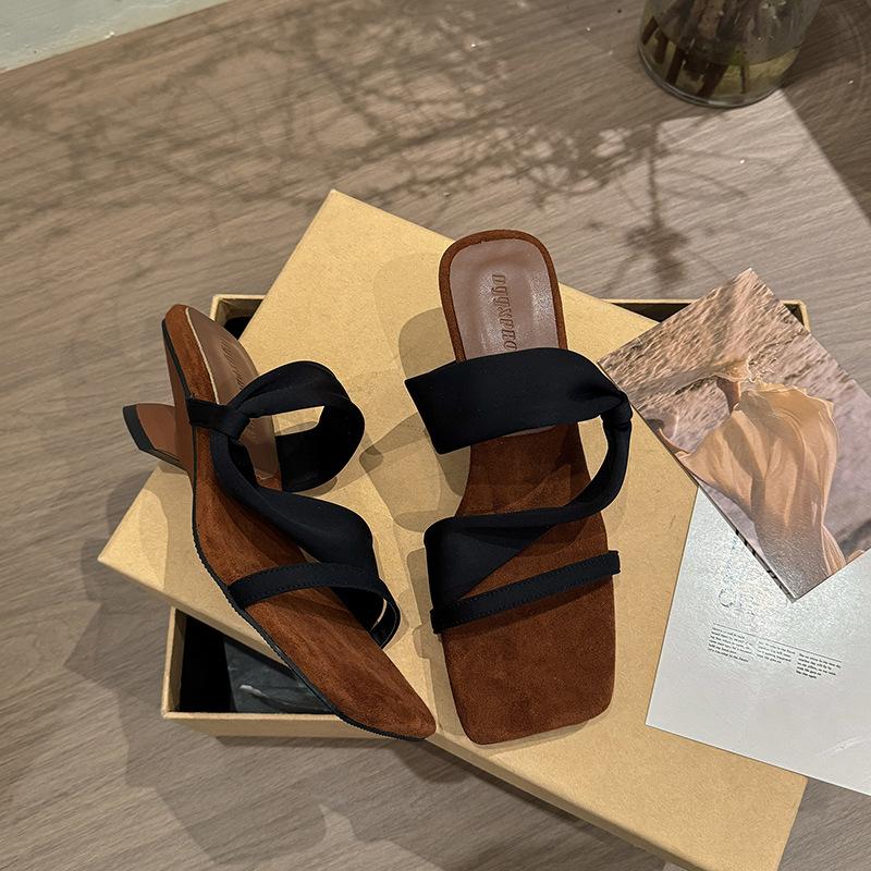 Французские сказочные ветряные прохладные тапочки женские 2025 лето новая носка мода красивые слова с темпераментом сандалии на толстом каблуке