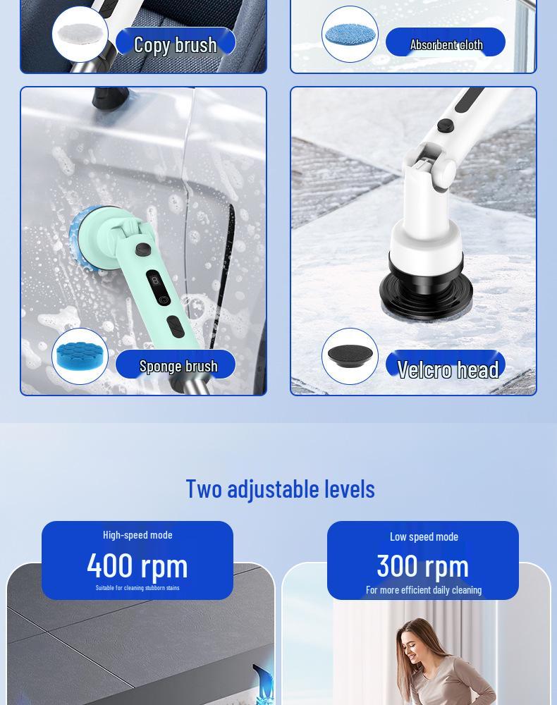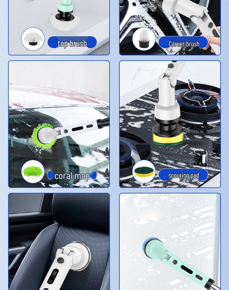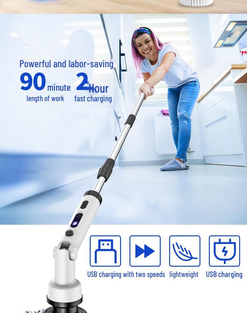 Складная беспроводная электрическая щетка для уборки - ручная, с длинной ручкой, вращающаяся для использования на кухне и в ванной комнате