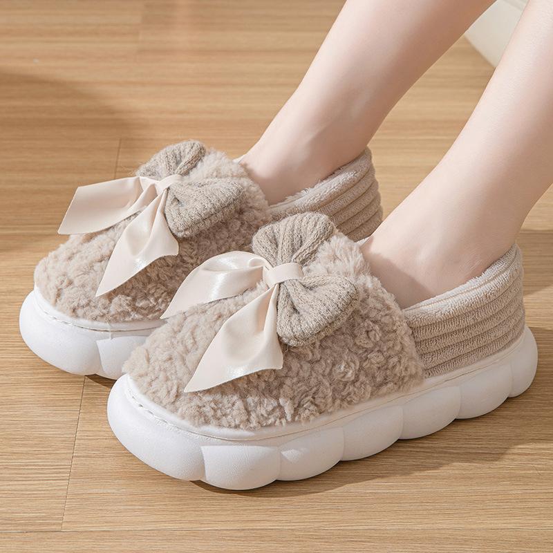 Модные меховые тапочки для женщин Зимние с бантом Меховые Модные Теплые до щиколоток Плюшевые Уютные Слайды для дома В помещении Мягкая подошва Хлопковая обувь