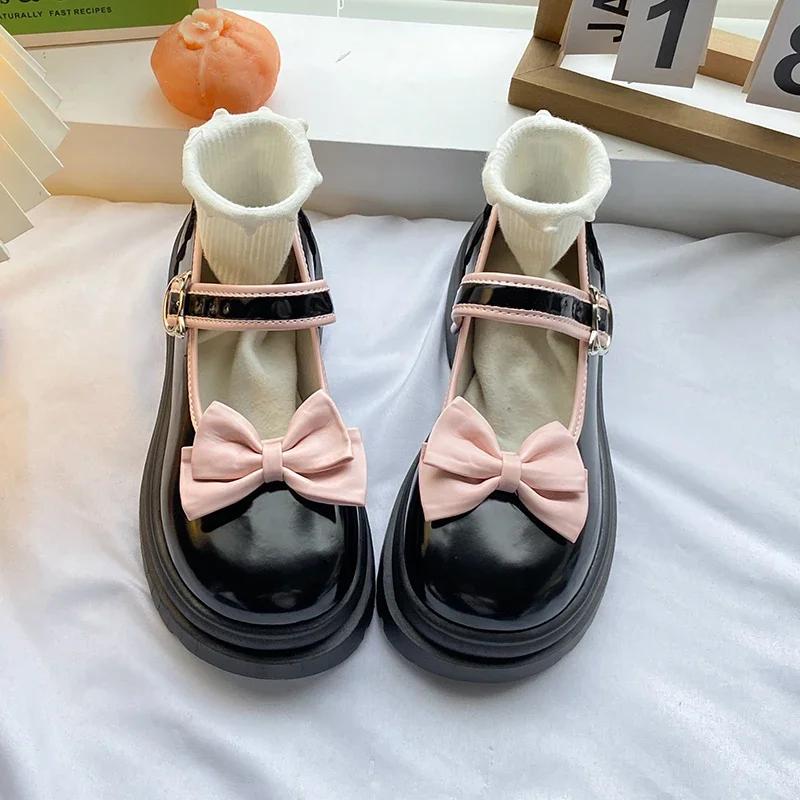 Модная женская обувь с бантами, обувь Лолиты, Каваии, Мэри Джейн, женская, в японском стиле, винтажная, 2025, высокий каблук, платформа, обувь для студенток колледжа
