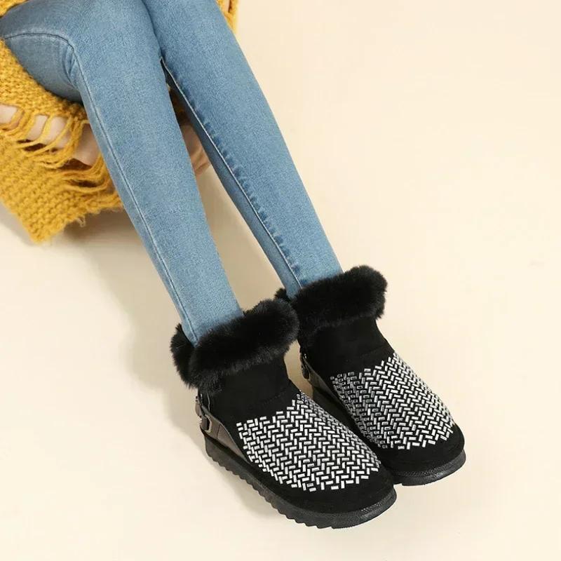 Модные женские ботильоны со стразами, зимние ботинки, элегантные на среднем каблуке, высококачественные ботильоны для женщин, весна 2024, защитный плюш