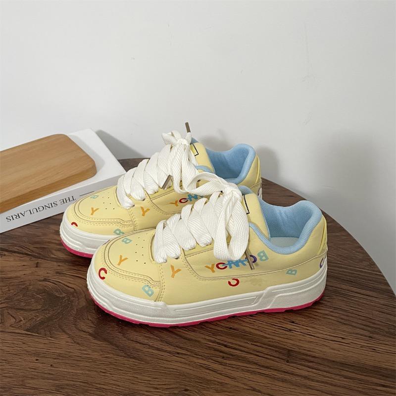 Модные повседневные низкие студенческие спортивные кроссовки Модные универсальные Новинка Буквы Граффити Толстая подошва Женская обувь Tenis De Mujer