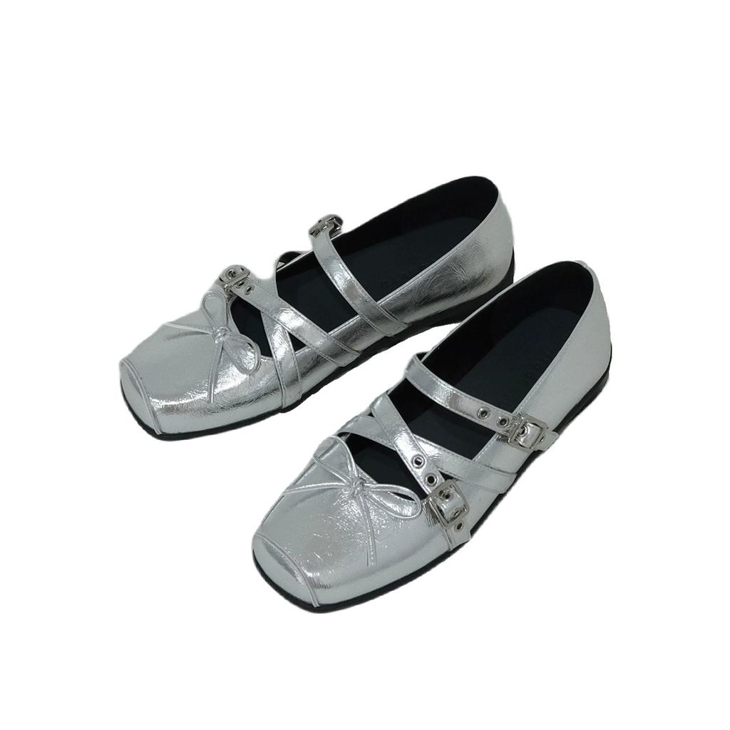Fashion Elegant Silver Lolita Leather Shoes | Buckled Mary Jane Flats with Sheer Socks, Ideal for Sweet & Chic Outfits