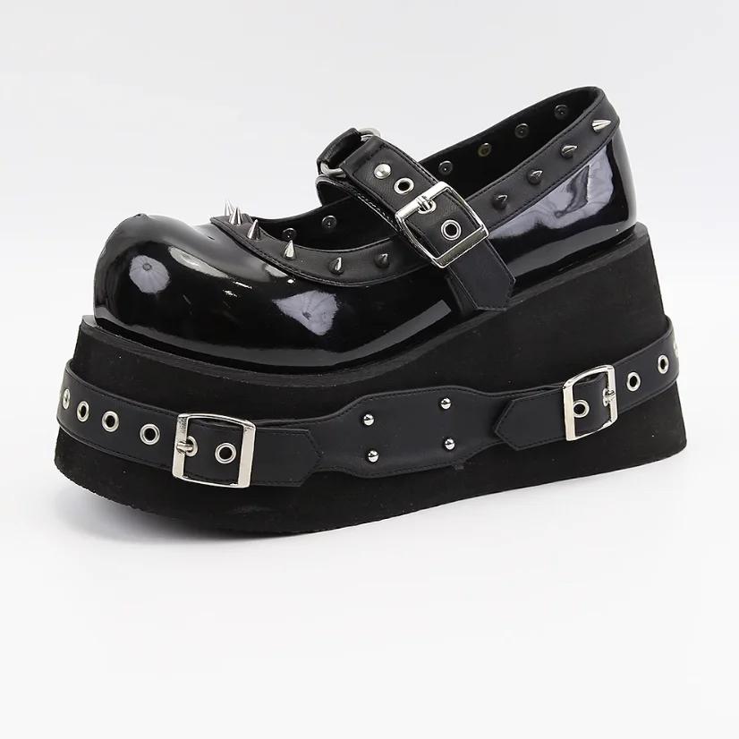 Модные женские туфли Мэри Джейн на толстой подошве-маффин, большого размера, с круглым носком, модные туфли на платформе, украшенные заклепками