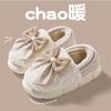 Модные женские ретро-модные хлопковые тапочки с бантом, женские осенне-зимние домашние тапочки для помещений 2025, теплые, мягкие, плюшевые, хлопковая обувь для девочек