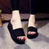 Fashion Slippers women's summer foam sandals high heels thick soles anti-skid flip flops fashionable outer stripes Korean beach slippers