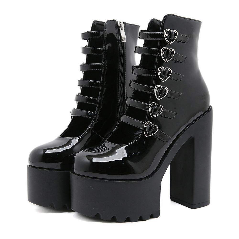 Модные туфли-лодочки на блочном каблуке для женщин, модные ремешки с пряжками, дизайн в виде сердца, туфли для платья, боковая молния, высокий каблук, туфли Мэри Джейн, уличный стиль