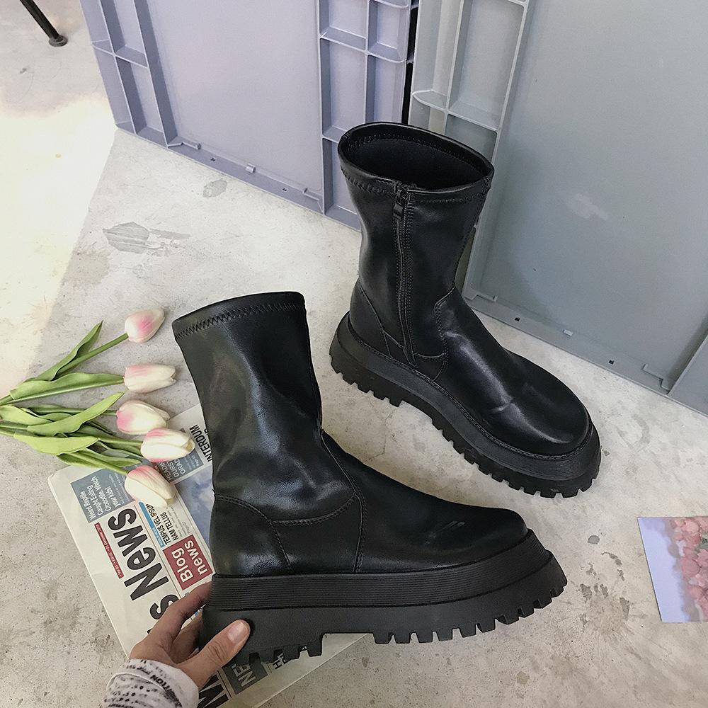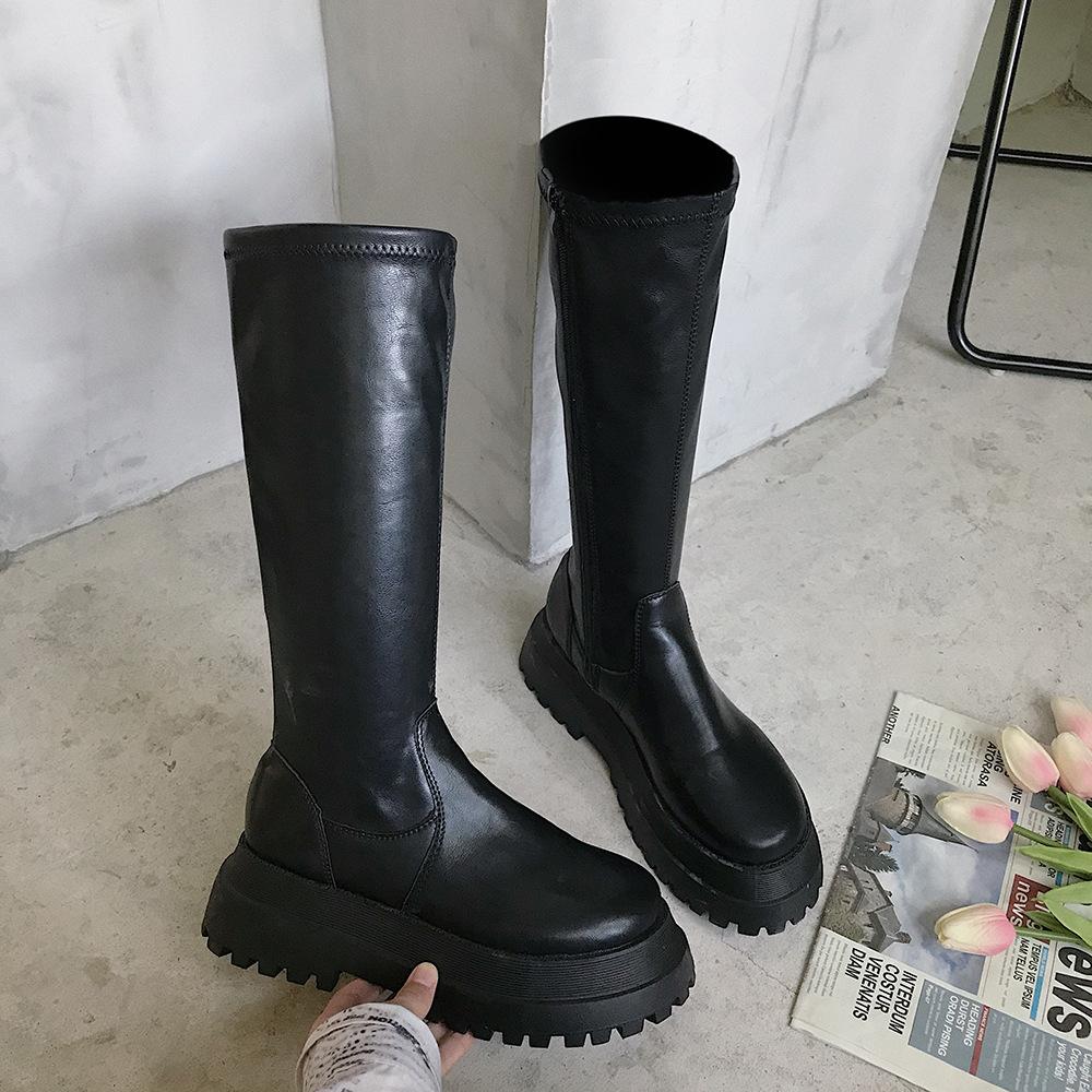 Модные зимние ботинки на массивной платформе, высокие сапоги с круглым носком на молнии, толстая подошва, женская модная зимняя обувь, женские ботфорты 2025