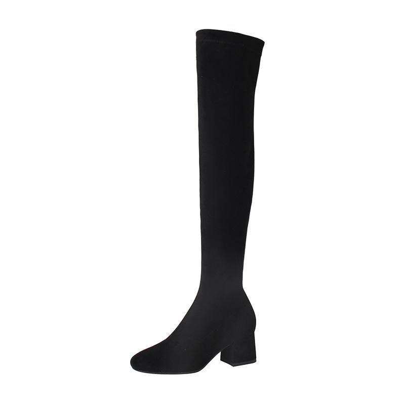 Модные ботфорты, Женские туфли на высоком каблуке, Стрейч-сапоги, Высокие сапоги, Сапоги цвета хаки, Замша, с флисовой подкладкой для осени и зимы