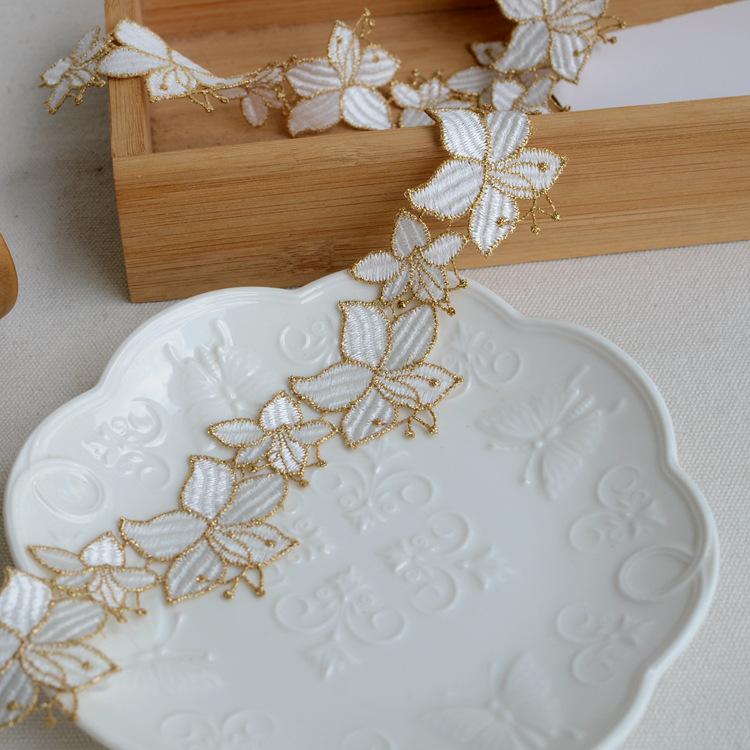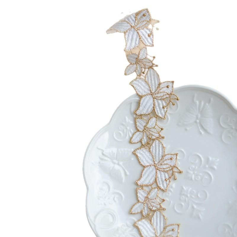 Декоративное кружево с аксессуарами Ткань Кружевные аксессуары Вышивка высококачественной золотой нитью Водорастворимое кружево Материалы для одежды Ципао