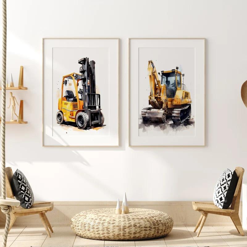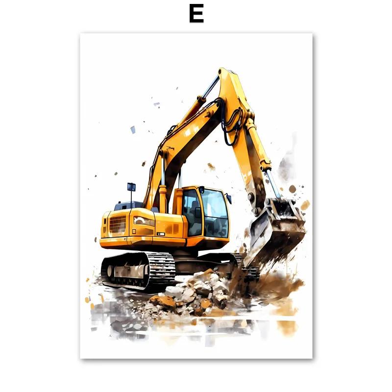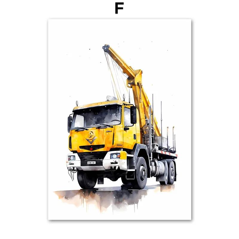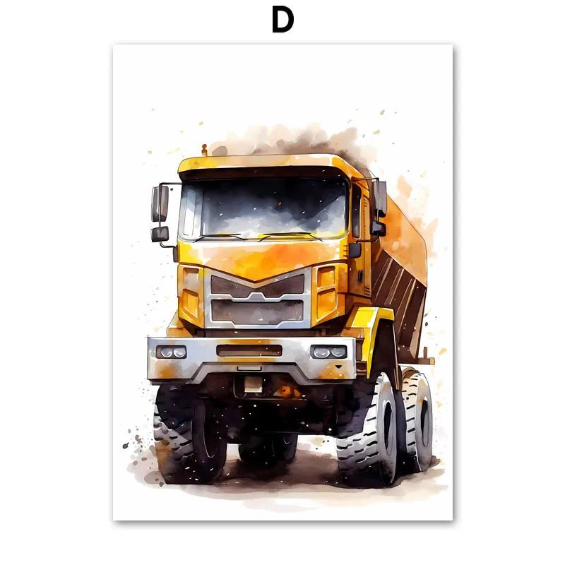 Строительная машина Грузовик Мальчики Детская Настенное искусство Холст Акварельная живопись Печатная картинка Постер Декор для детской игровой комнаты