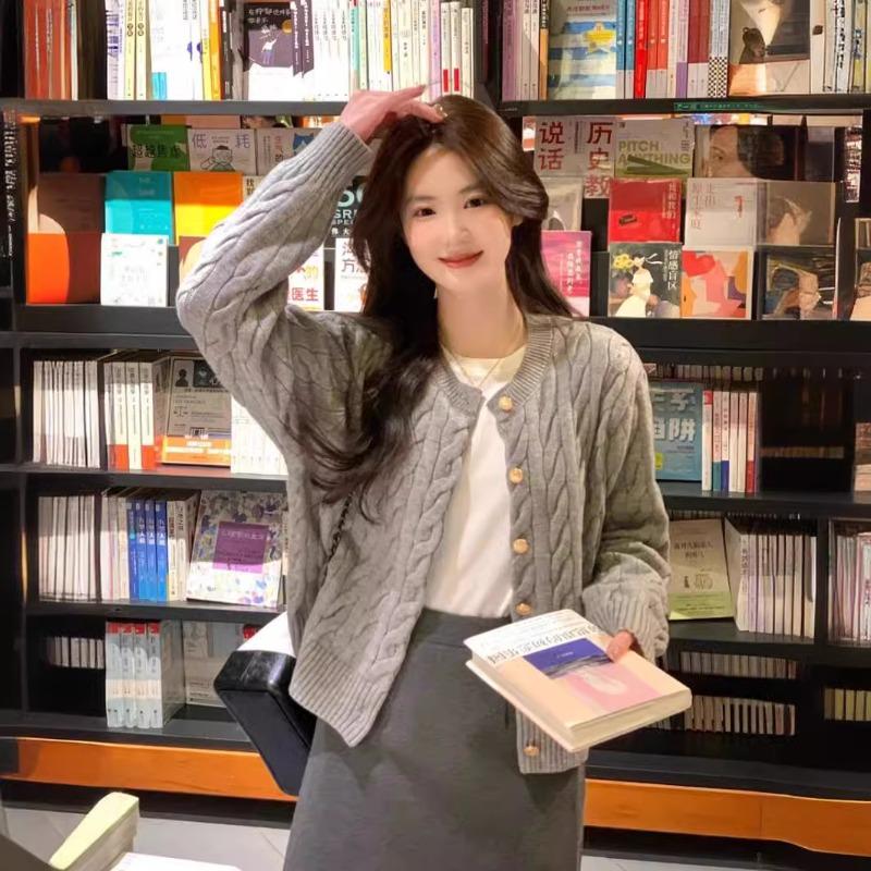 Autumn new women's sweater high-end small top retro coat knitted cardigan women