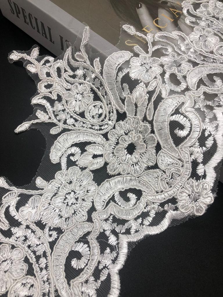50 ярдов Автомобильное костяное кружево Кружево Книжно-белое Вышивка Свадебное платье Высококачественные аксессуары Юбка Головной убор Сделай сам Волнистый край Французское