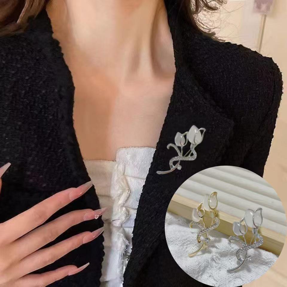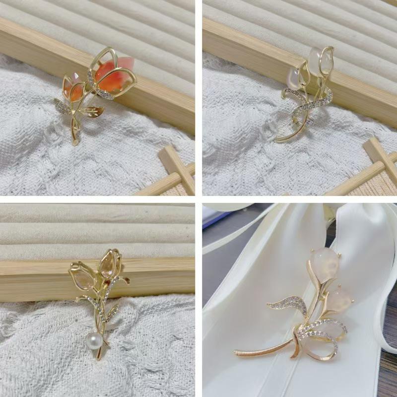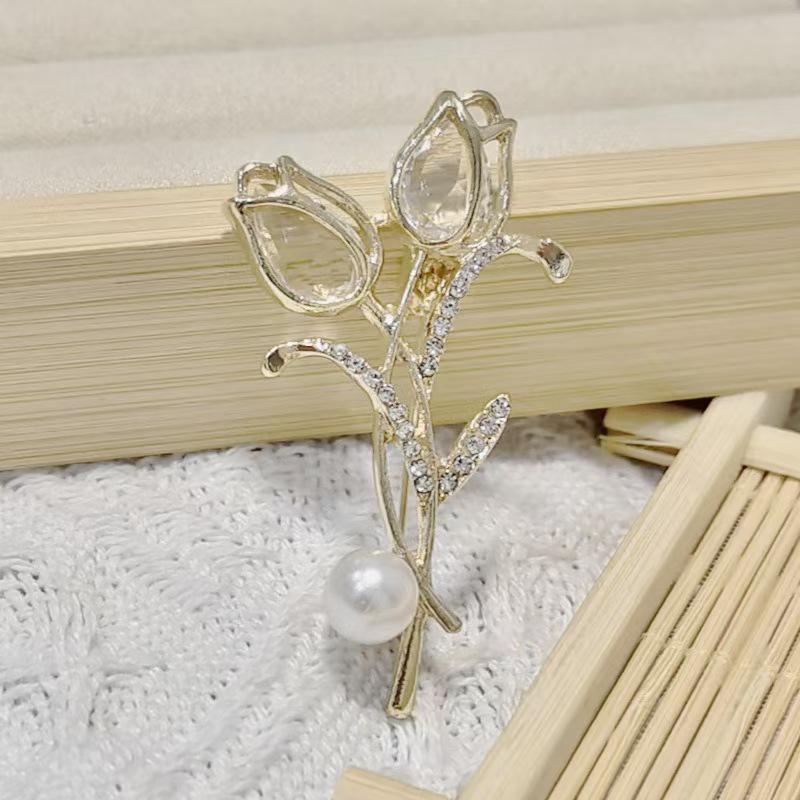 Высококлассная брошь-тюльпан со стразами и пряжка для шарфа