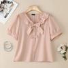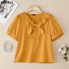 VONDA Женская блузка с лацканами, короткими рукавами, пуговицами, бантом, повседневная, укороченная — купить товар онлайн с бесплатной доставкой до всему миру!