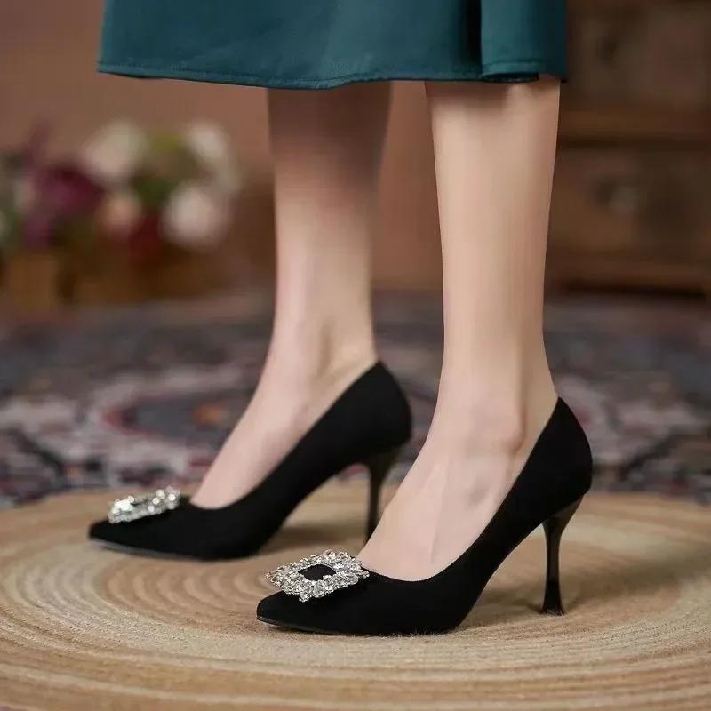 Модная повседневная женская обувь, универсальные женские туфли на шпильках, квадратные, со стразами, удобные туфли на высоком каблуке для женщин, zapatos mujer