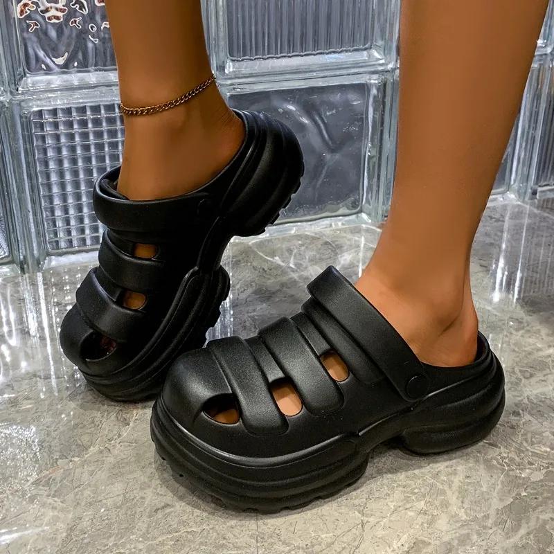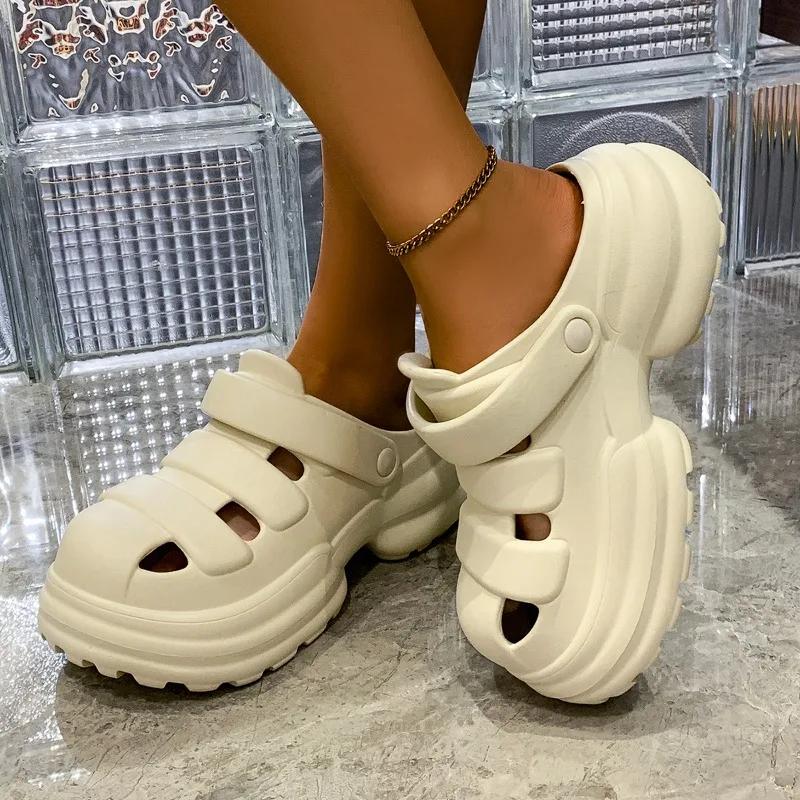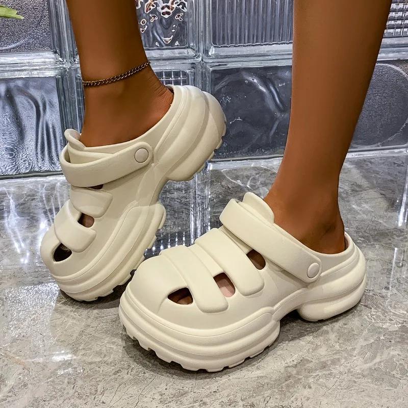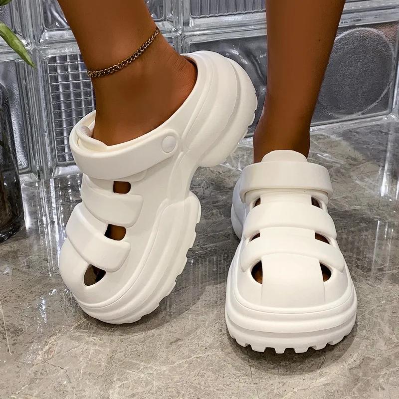 Мода 2025 Горячая Распродажа Женская Обувь Баотоу Женские Тапочки Мода Однотонные Повседневные Тапочки Женские Летние Слингбэки Тапочки на Платформе