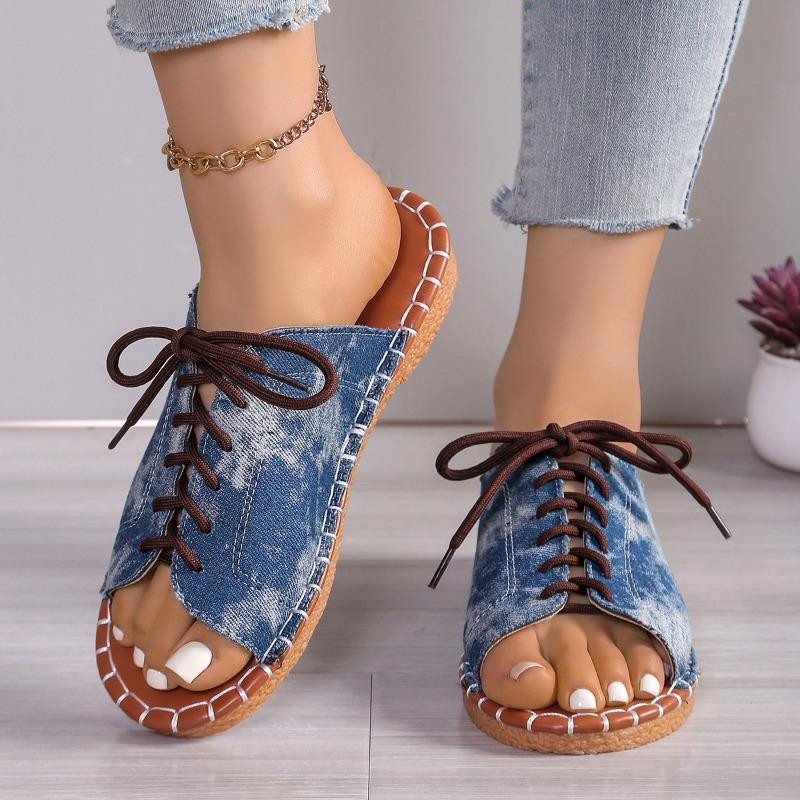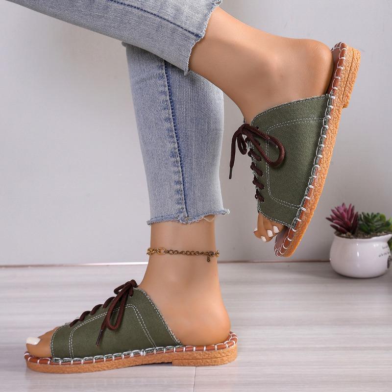 Мода Плюс Размер 2025 Лето Новые Женские Повседневные Шлепанцы Уличные С Открытым Носком На Шнуровке Низкий Каблук Шлепанцы для Горячей Распродажи Ежедневные Римские Сандалии