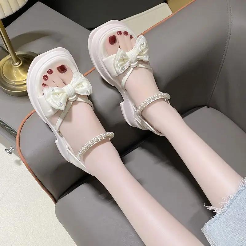 Модная женская обувь Жемчуг Римский стиль Удобные и элегантные Вип женские сандалии Лето 2025 Предложения Тренд Низкая цена Роскошные ПВХ сандалии