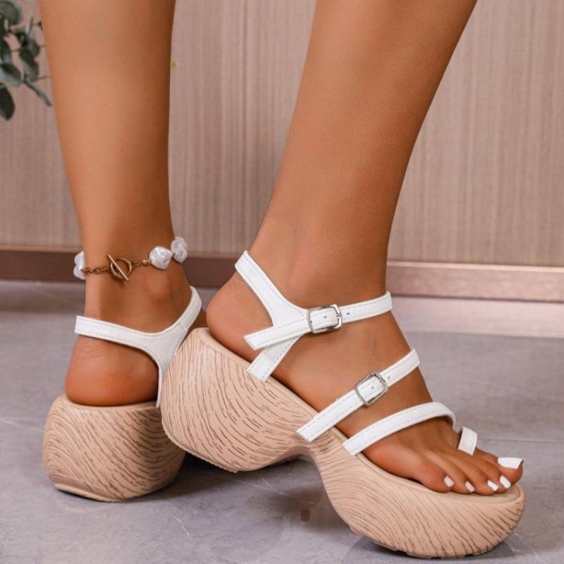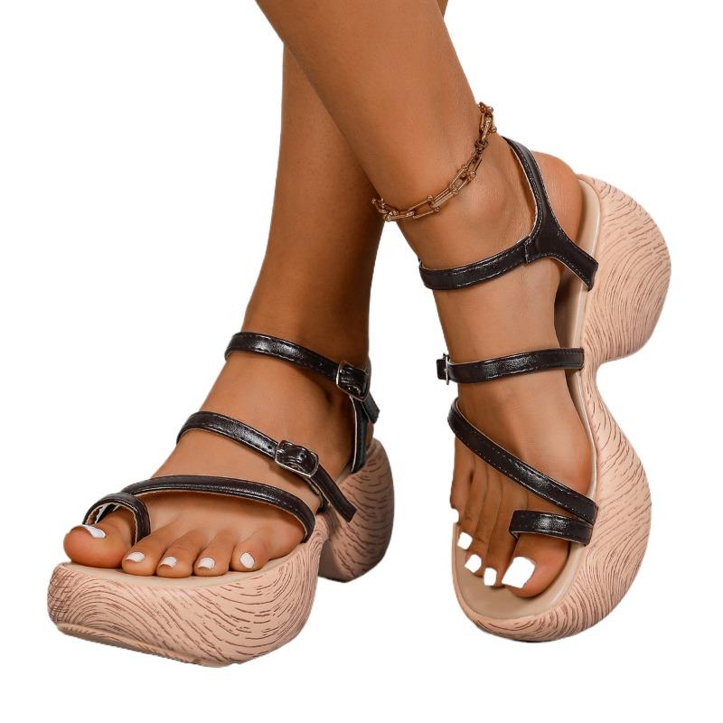 Мода 2025 Горячая Распродажа Рим Новые Женские Сандалии с Открытым Носком Летние Сандалии на Платформе с Круглым Носком и Ремешком с Пряжкой для Лаконичной Повседневной Обуви