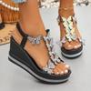 Мода 2025 Новые Летние Женские Сандалии на Эластичной Резинке, Кристальная Бабочка, Платформа, Клиновидная Подошва, Сандалии с Бортиком для Моды, Большие Размеры, Туфли для Платья