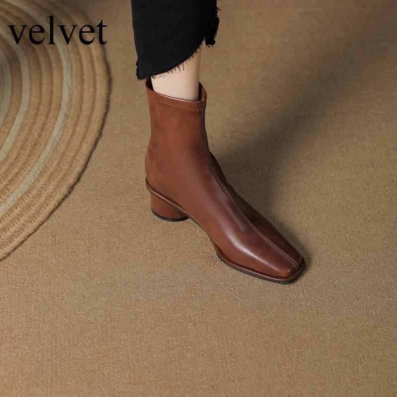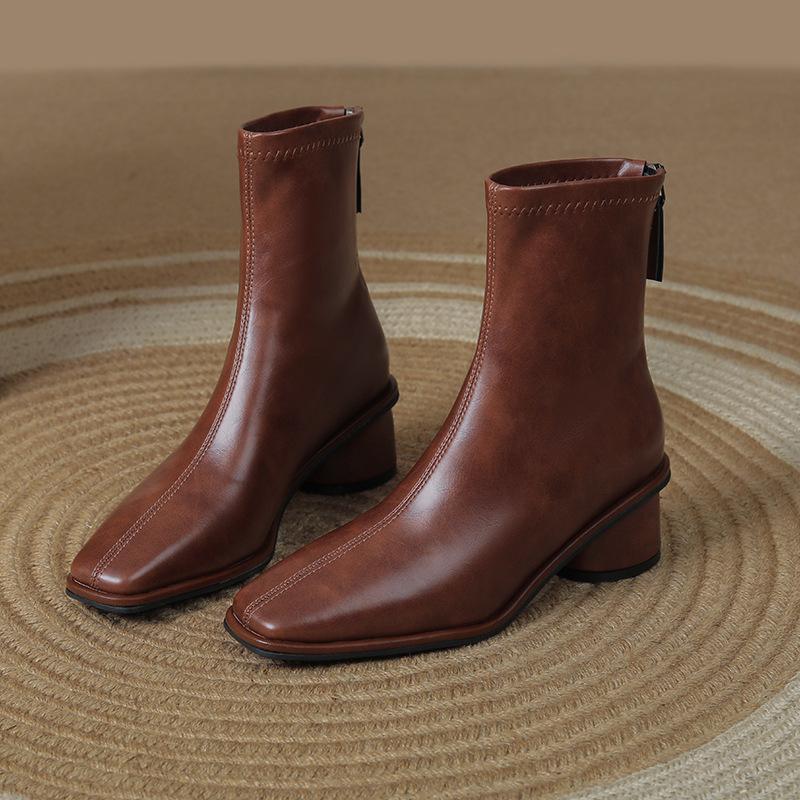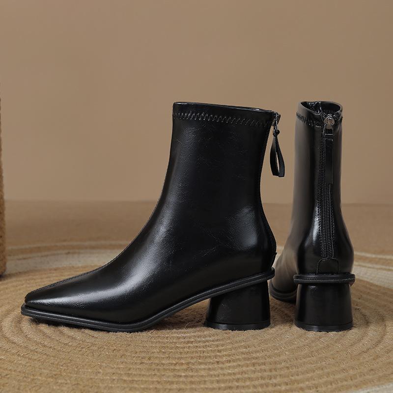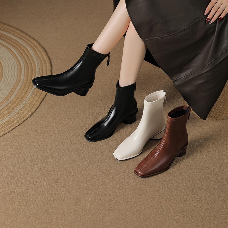Модные ботильоны с квадратным носком женские 2025 осень и зима новые мягкая подошва модные универсальные на толстом каблуке челси тонкие ботинки женские