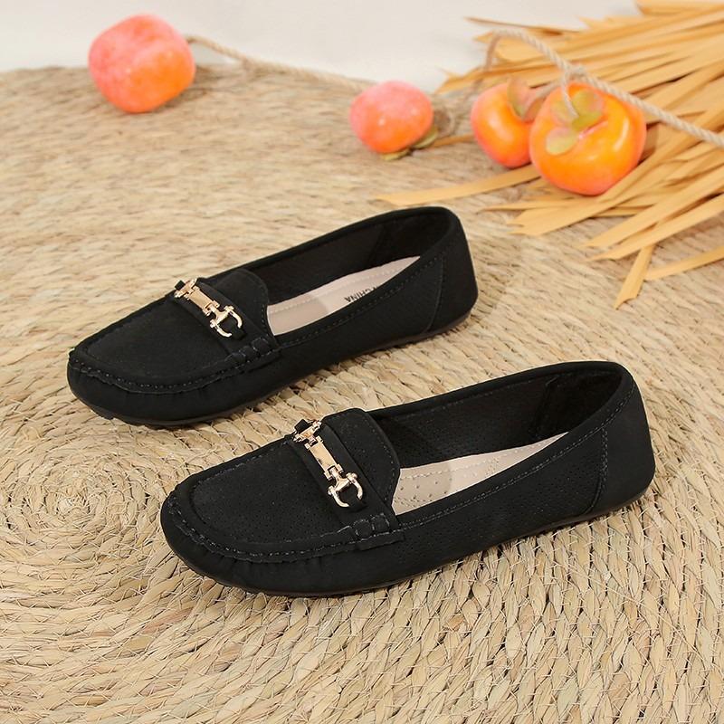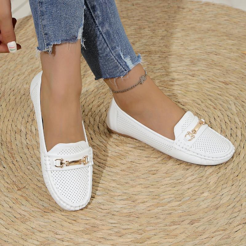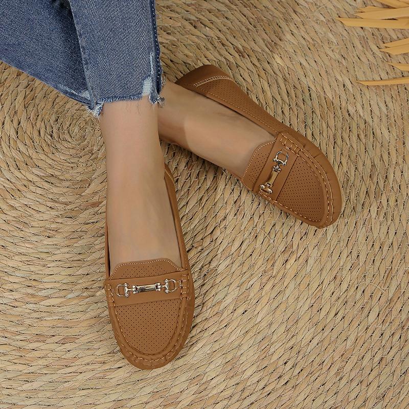 Мода 2025 Женская обувь слипоны Женские туфли на высоком каблуке Модная металлическая отделка новые большие размеры Легкая мягкая подошва удобные плоские низкие каблуки