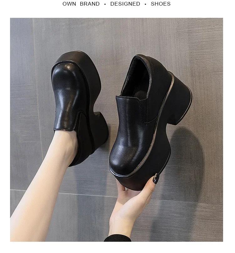 Модная обувь Lefu Женская 2025 Новый стиль Внутренняя высота 11 см Толстая подошва Маленькие кожаные туфли Женские туфли-лодочки Женская обувь