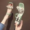 Модные сандалии для женщин 2025 Новый сказочный стиль Корейская версия Модные туфли на высоком каблуке Летние цветы Одна линия Два способа носки, Сандалии на толстом каблуке